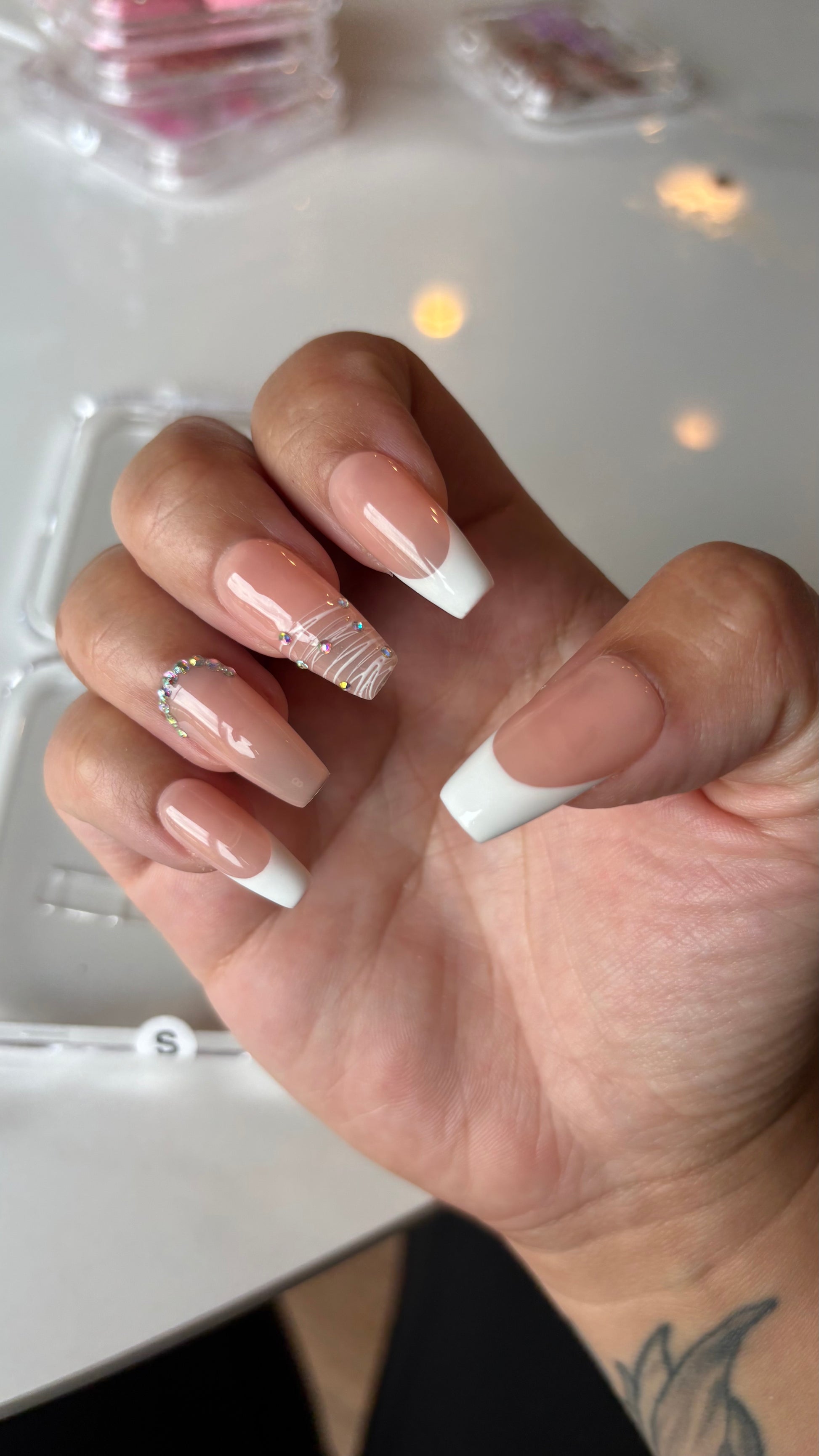 Whether you're dressing up for a special occasion or adding flair to your everyday style, these medium-length square nails bring a delicate balance of sophistication and fun. Easy to wear and confidently cute, they’re your go-to for a fresh, feminine vibe.