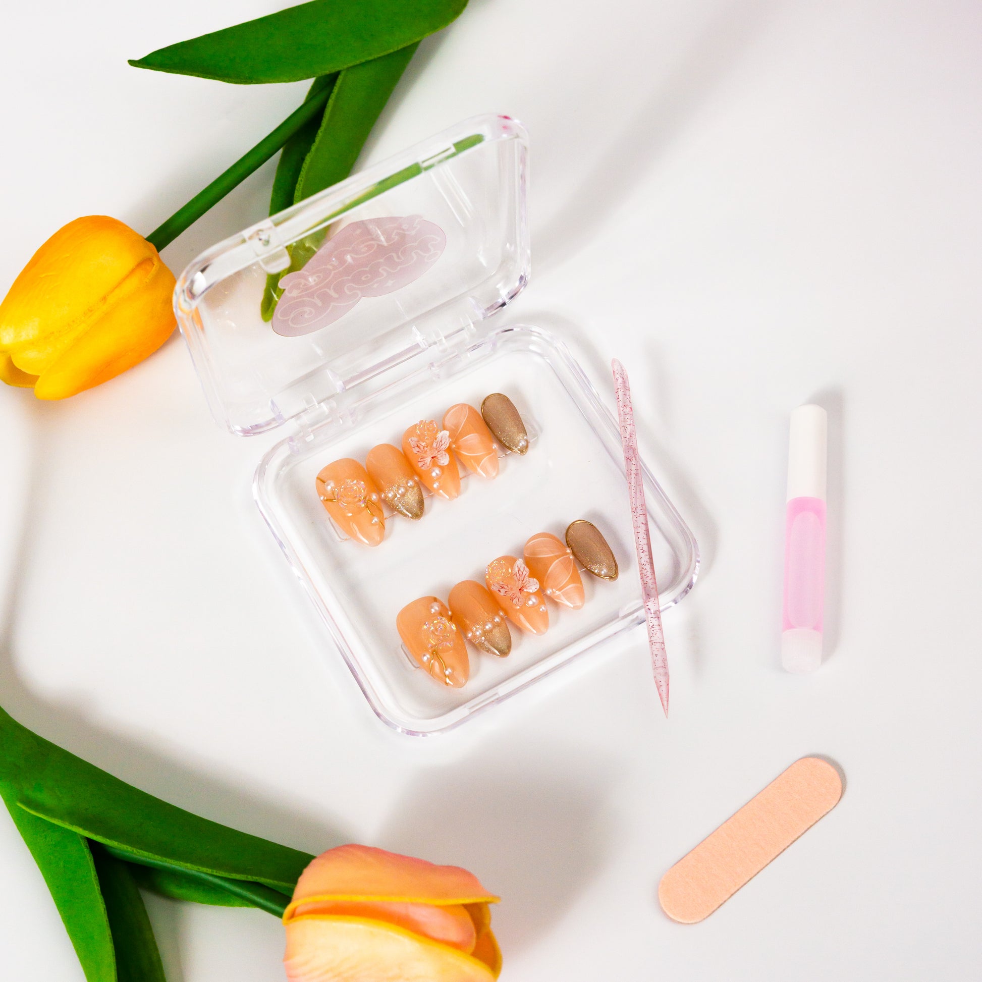 Affordable luxury handmade nail art for half the price of salon nails. Each set is handcrafted, requires hours to create, delivering salon-quality nails that won’t hurt your bank account.